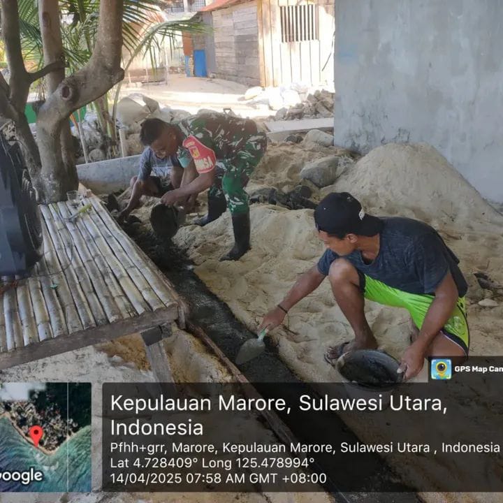 Koptu Cornimus Damima Babinsa Koramil1301-10/Marore melaksanakan kegiatan kerja bakti membantu Masyarakat keluarga Andaria Samalang dalam giat pemasangan Pondasi Rumah. Senin 14/04/2025