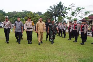 Bupati Dharmasraya, Sutan Riska Tuanku Kerajaan, menghadiri Apel Gelar Pasukan Operasi Keselamatan Singgalang Tahun 2025 yang berlangsung di Mapolres Dharmasraya, Gunung Medan, Senin (09/02/2025)