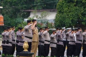 Kapolres Dharmasraya, AKBP Bagus Ikhwan, bertindak sebagai pemimpin apel dan membacakan amanat Kapolri, Jenderal Listyo Sigit Prabowo.