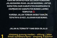 Dharmasraya tikampost.id Kepala Dinas Perhubungan Kabupaten Dharmasraya, Sumatera Barat, Catur Erbyandri Mushendra menginformasikan kepada seluruh pengguna jalan bahwa ruas Jalan Nasional Lintas Sumatera yang…