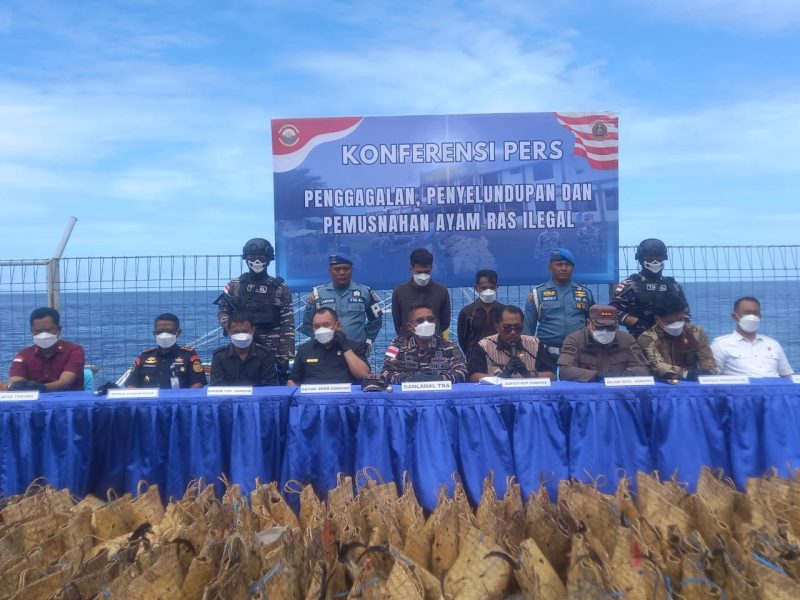 Pangkalan TNI Angkatan Laut (Lanal) Tahuna, di bawah Koarmada II, menggelar konferensi pers terkait pemusnahan barang bukti dari dua kasus penyelundupan ayam ras Filipina. Tim Satuan Kapal Patroli Quick Response (SFQR) Lanal Tahuna berhasil menggagalkan dua upaya penyelundupan ini dalam operasi terpisah di perairan Kepulauan Sangihe.