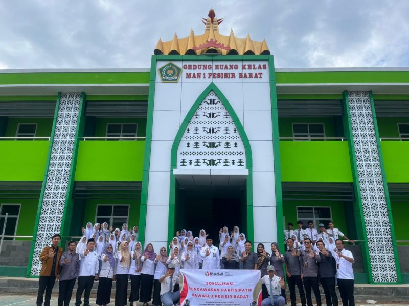 Pesisir Barat — Badan Pengawas Pemilihan Umum (Bawaslu) Kabupaten Pesisir Barat melaksanakan kegiatan sosialisasi pengawasan partisipatif kepada pemilih pemula dengan menjadi pembina upacara di Madrasah Aliyah Negeri (MAN) 1 Pesisir Barat, Senin (4/8).