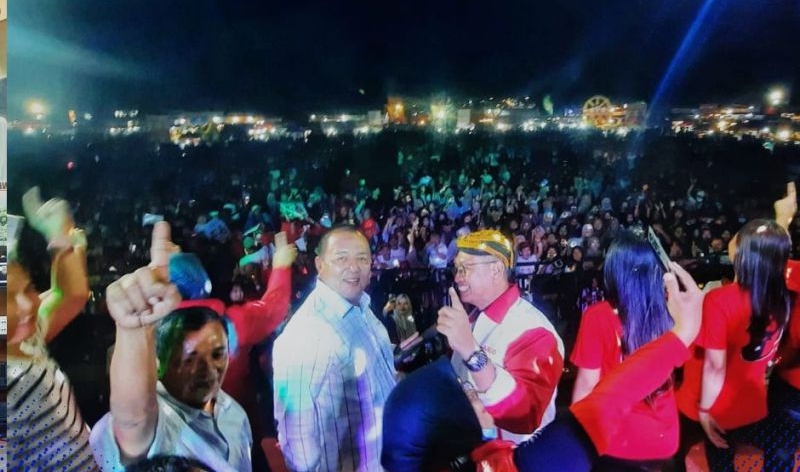 Ribuan warga Lampung Timur memadati Lapangan Sribawono untuk menghadiri pesta rakyat bersama pasangan calon gubernur dan wakil gubernur Lampung nomor urut 1, Arinal Djunaidi – Sutono, yang dikenal dengan sebutan Ardjuno, pada Senin, 28 Oktober 2024 malam.