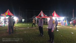 Kegiatan patroli KRYD dengan keliling berjalan kaki dipimpin oleh Aipda M. Sobri bersama personel Polsek Way Tuba berlangsung di lokasi pasar malam Lapangan sepak bola Kampung Way Pisang Kecamatan Way Tuba, Kabupaten Way Kanan.