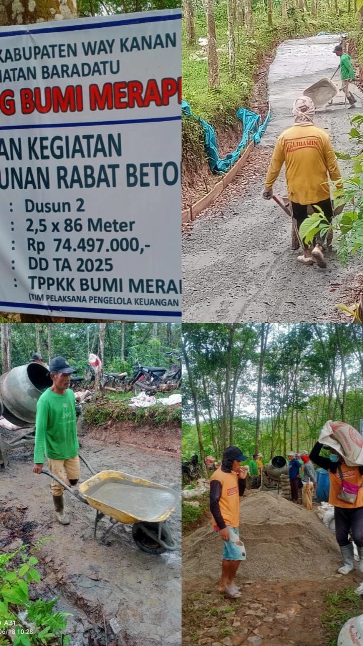 Way Kanan – Tim Tikampost.id menemukan dugaan penyimpangan dalam proyek pembangunan rabat beton di Kampung Bumi Merapi, Kecamatan Baradatu, Kabupaten Way Kanan. Hasil investigasi lapangan pada Rabu, 18 Juni 2025, menunjukkan indikasi pekerjaan yang tidak sesuai Rencana Anggaran Biaya (RAB).