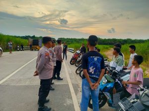 “Alhamdulillah, ditengah perjalanan patroli kami berhasil mendapati sejumlah pemuda yang sedang nongkrong atau duduk dipinggir jalan yang diduga akan melakukan aksi balap liar.