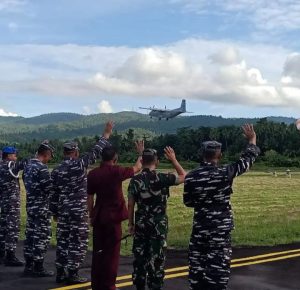 Keberangkatan Danlantamal VIII Laksma TNI Nouldy J. Tangka, S.A.P., M.Tr.Opsla., CHRMP. bersama rombongan dari melaksanakan Kegiatan Kunjungan Kerja di Wilayah Kab. kepl Sangihe terkhusus di Mako Lanal Tahuna.