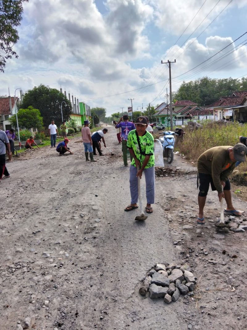 RT,Beserta Linmas kampung Bandar sari kecamatan waytuba kabupaten Waykanan Bersama – sama melakukan gotong Royong penimbunan jalan propinsi yang kondisi nya Rusak parah Akibat Banyak nya Mobil Damtruck melintas sehingga Semangkin memperparah kondisi jalan kampung Bandar sari(18/5/2025).