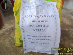 Dalam kesempatan tersebut DPAC Kostrat negara batin Hendrik iskandar juga ikut langsung membantu Polsek Negara Batin yang berkunjung kerumah rumah warga srimenanti ,untuk memberikan bantuan sembako dari Polres Waykanan.