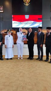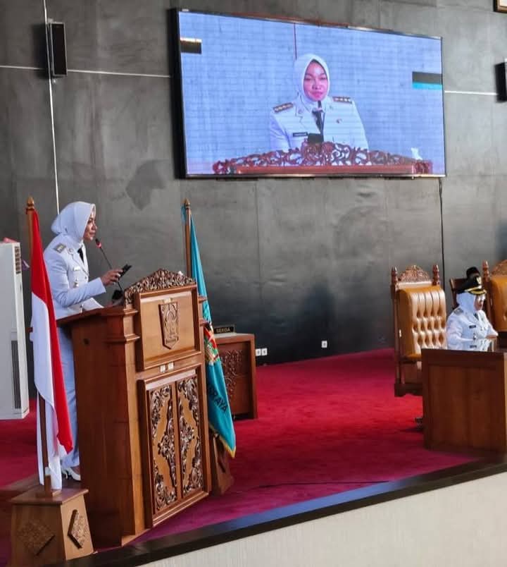 Bupati Dharmasraya, Annisa Suci Ramdhani, menyampaikan pidato perdana di hadapan Sidang Paripurna Istimewa, yang dipimpin Ketua DPRD Kabupaten Dharmasraya, Jemi Hendra, Senin (03/03/2025).