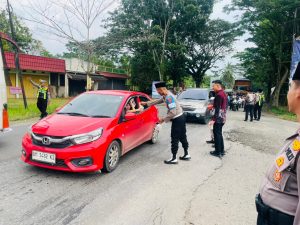 Kegiatan berlangsung tertib, aman, dan penuh keakraban antara personel kepolisian dengan masyarakat yang melintas.