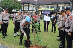 Usai arahan, Kabid Propam bersama rombongan melaksanakan kegiatan penanaman pohon di lingkungan Mako Polres Dharmasraya sebagai bentuk kepedulian terhadap kelestarian lingkungan, sekaligus menciptakan suasana kerja yang asri.
