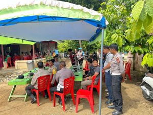 titik pengamanan dilakukan di sekitaran Rumah Jaiman jorong Koto Agung Personel Polres Dharmasraya bersama Personil Polsek Koto Agung menjaga keamanan dan ketertiban selama Kegiatan Ibadah Misa jelang natal 2024 di Rumah Jaiman Jorong Koto Agung Kenagarian Sei Duo Kec Sitiung Kab Dharmasraya di Pimpin oleh Kasi Humas Polres Dharmasraya AKP Edy Sumantri dan Kapolsek Koto Agung AKP. Sutrisman.SH.MH