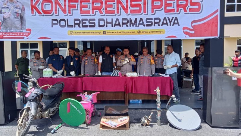 Kapolres Dharmasraya AKBP Bagus Ikhwan, S.I.K., M.H.dalam press rilis sampaikan ada tiga kasus menonjol dibulan Maret 2025 ini,seperti kasus pencurian dengan kekerasan (Curas) dan kasus memperoleh senjata api rakitan Laras panjang atau disebut dengan gobok,serta perjudian abok dengan mengunakan uang sebagai taruhan press rilis di marko Polres. setempat.(5/3-2025).