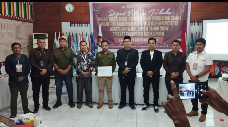 Rekapitulasi hasil penghitungan perolehan suara pemilihan Bupati dan Wakil Bupati KIP Aceh Singkil menetapkan Paslon 01. Safriadi Oyon – Hamzah Sulaiman (Sahabat) menang telak selisih 13.454 suara. Meraih suara terbanyak dari pada rivalnya nomor urut 02. Dulmusrid – Alhidayah (DuHa).