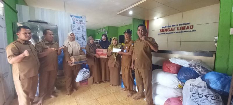 TP-PKK Nagari Sei Limau, Kecamatan Asam Jujuhan, menyerahkan bantuan kemanusiaan untuk korban bencana di Sumatera Barat melalui Camat Asam Jujuhan, Mashuri Thaib, pada Jumat (4/12/2025).