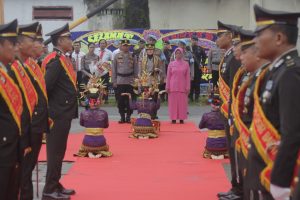 Tarian tradisional Sigeh Pengunten turut mengiringi penyambutan, menandakan penghormatan bagi tamu agung. Sambutan kehormatan dari Pasukan Jarmat Sat Samapta dan barisan Pedang Pora semakin menambah kekhidmatan acara. Kehadiran para Pejabat Utama Polres turut mempererat suasana kebersamaan dan solidaritas.
