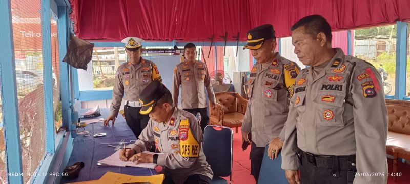 Waka Polres Dharmasraya, Kompol Armijon, S.H., M.H., bersama Kabag Ops, Kompol Eliswantri, S.H., M.H., dan Kasat Lantas, AKP Zamrinaldi, S.H., M.H., melakukan pengecekan Pos Pengamanan (Pos Pam) dan Pos Pelayanan (Pos Yan) mudik Lebaran Idul Fitri 1446 H dalam rangka Operasi Ketupat Singgalang 2025 di wilayah hukum Polres Dharmasraya, Polda Sumatera Barat. Kegiatan ini dilaksanakan pada Rabu (26/03/2025).