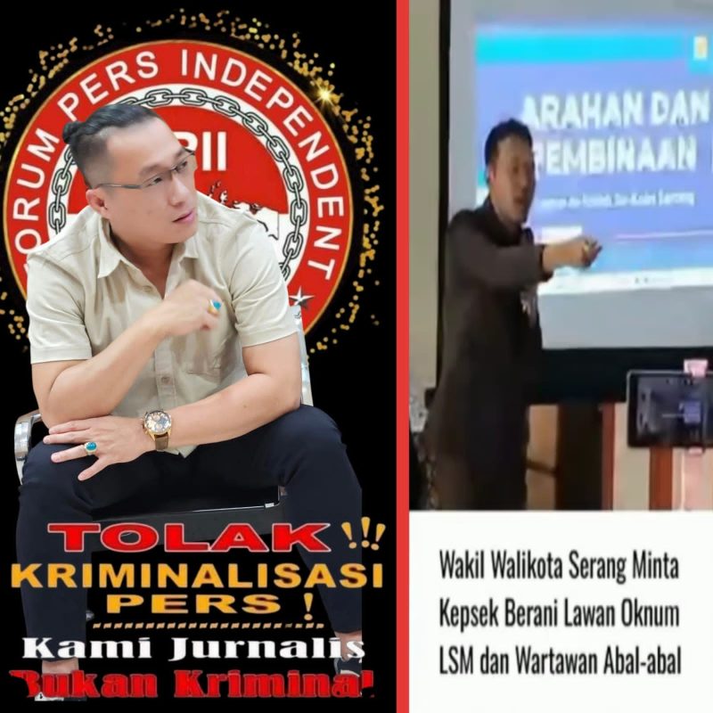 Kami Organisasi Pers Forum Pers Independent Indonesia (;FPII) kecam keras dan ingatkan Wakil Walikota Serang jangan membuat pernyataan yang tidak etis dan menyebarkan kebencian terhadap insan pers , karena pernyataan ini memperkuat pentingnya ruang demokrasi dan kebebasan pers sebagai pilar dalam sistem pemerintahan yang transparan dan akuntabel.